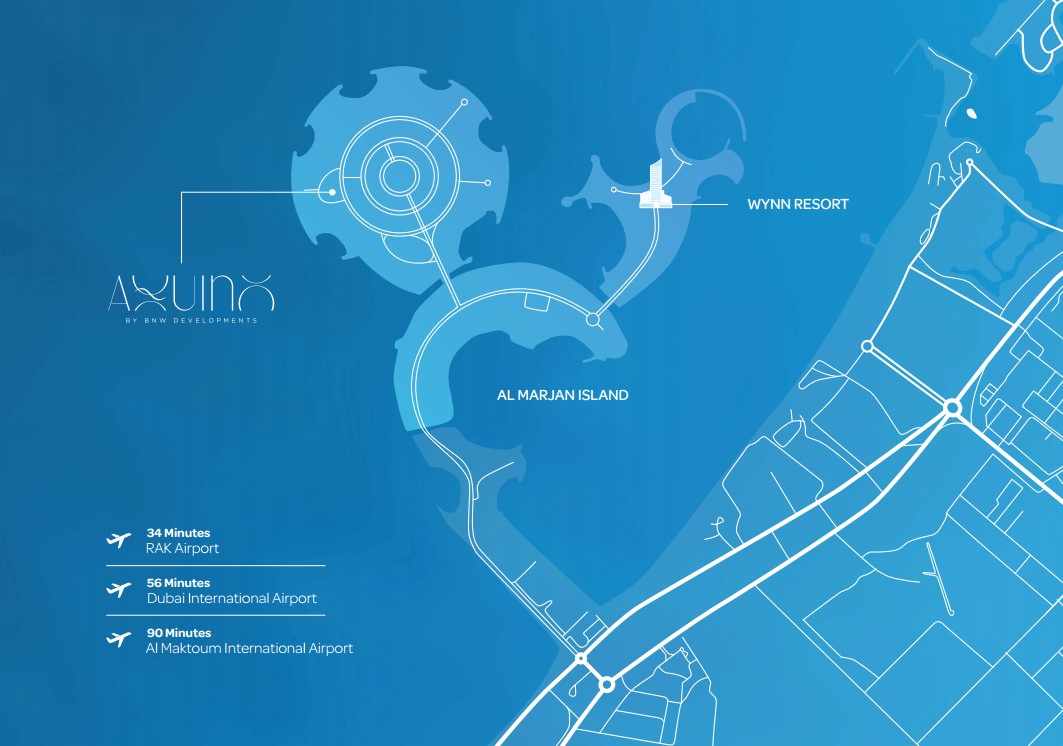 Aquino by BNW is located on Al Marjan Island in Ras Al Khaimah, UAE. It is a waterfront residential project offering 1, 2, and 3-bedroom apartments. The development is known for its direct beach access and panoramic sea views.