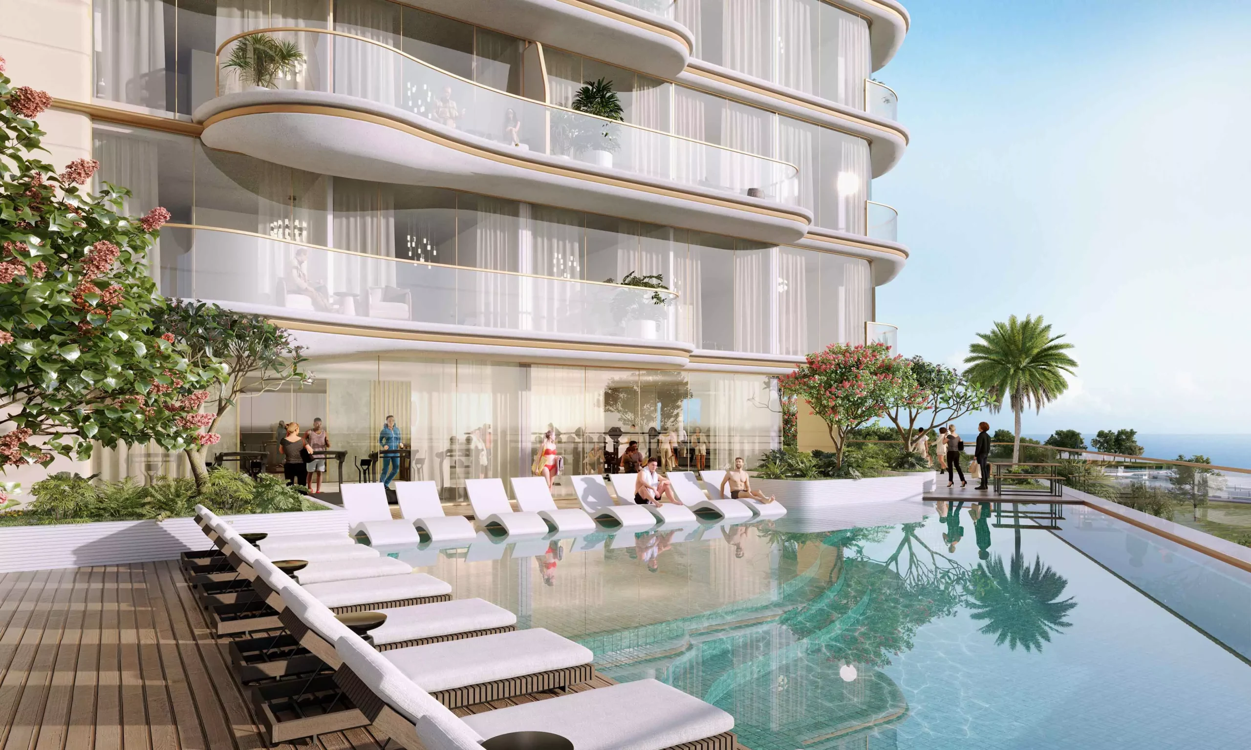 At Ananda Residences, water takes center stage as a symbol of tranquility and refinement. The expansive, state-of-the-art swimming pool offers a serene retreat where modern luxury meets natural harmony. With its crystal-clear waters and sleek design, it provides a refreshing escape amidst the vibrant energy of urban living. Surrounded by lush greenery and contemporary lounge spaces, the pool is ideal for relaxation and