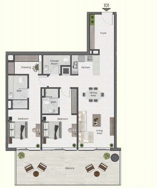 - Property Type ApartmentUnit Type 1, 2 & 3 BedroomsSize 773.95 to 2,558.61 Sq FtAmenities AI Powered Gym, Rooftop Infinity Pool, Clubhouse, Padel Court & Yoga Deck