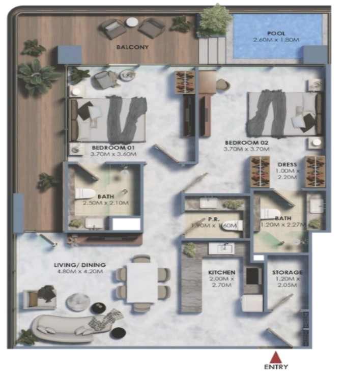 - Property Type Apartment & StudioUnit Type Studio, 1 & 2 BedroomsSize 450.47 to 1,332.36 Sq FtAmenities Kid's Play areas, Gym, Swimming Pool, Lush Gardens & Parks, Yoga Zones