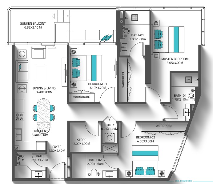 - Property Type ApartmentUnit Type Studio, 1, 2 & 3 BedroomsSize 411.81 to 1,396.93 Sq FtAmenities Techno Gym, Infinity Swimming Pool, Jogging Track, Cinema Area and BBQ Area