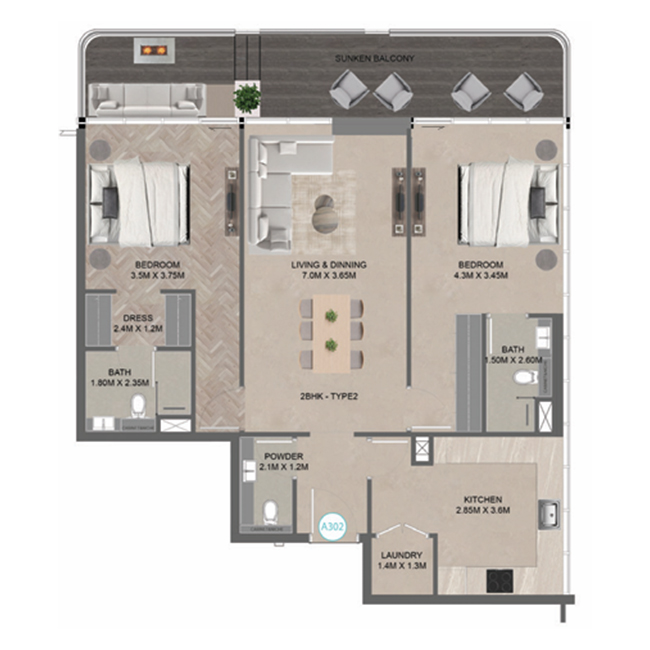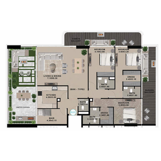 We take pride in introducing our trademark climate-controlled sunken balcony concept, an exclusive feature that sets us apart in the real estate market. As the sole patent holder, we are pioneering this innovative design to set new industry benchmarks.