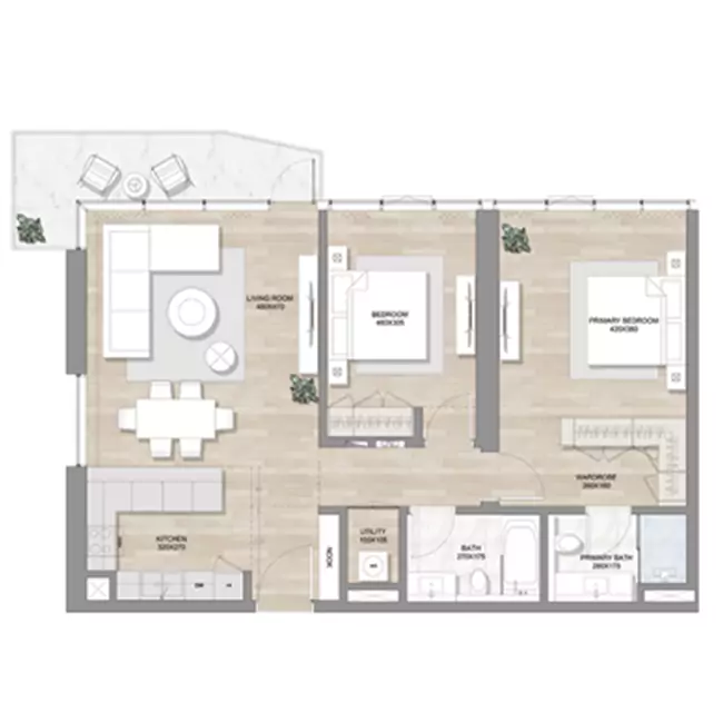 - Property Type ApartmentUnit Type Studios, 1, 2, & 3 BedroomsSize 520.3 to 3,104.3 Sq FtAmenities Large Swimming Pool. Kids Play Area. BBQ Stations. Shaded Seating Areas. Gym& Fitness Centre