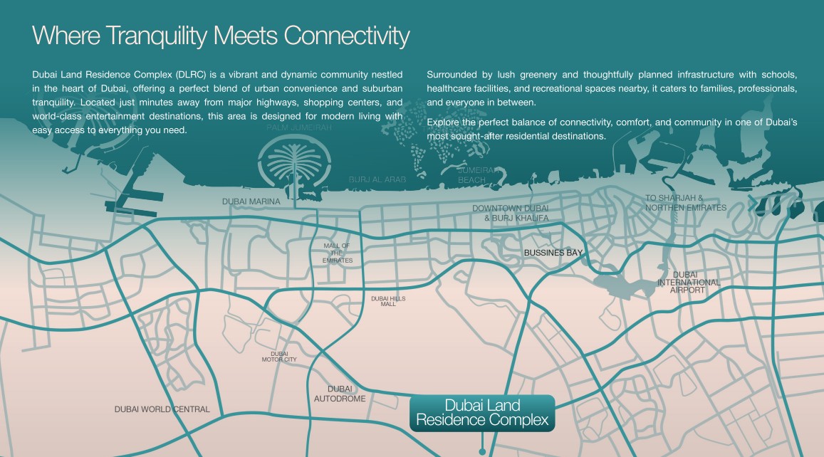 Its strategic location near Sheikh Mohammed Bin Zayed Road, Emirates Road, and Al Qudra Road ensures excellent connectivity throughout Dubai and convenient access to Abu Dhabi.